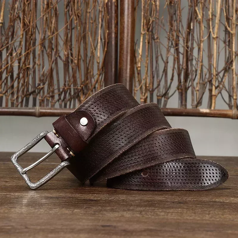 Men’s 3.8cm Genuine Cowhide Leather Belt with Stainless Steel Buckle – Vintage Style